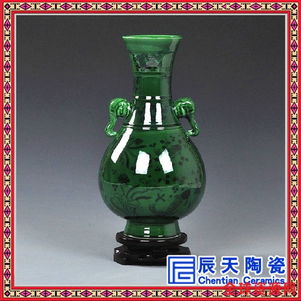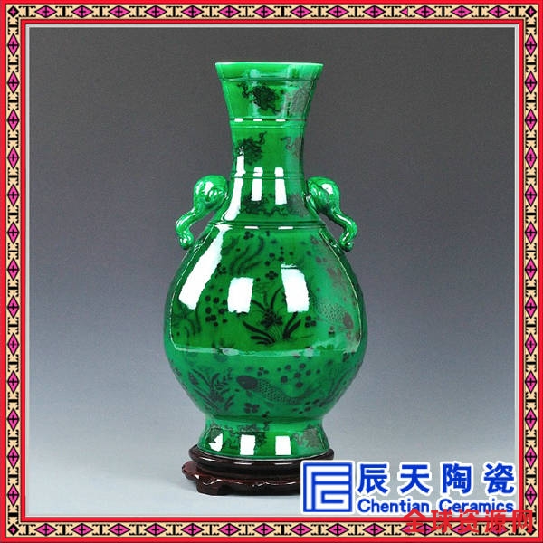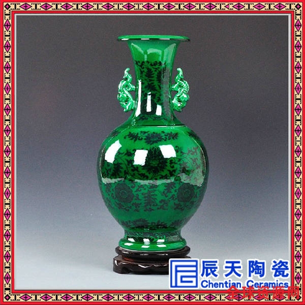 景德镇陶瓷名气大、工艺好,广受青睐。我公司生产的绿翡翠陶瓷花瓶外表美观,形态各异,工艺精湛,具有很高的审美价值和收藏价值。